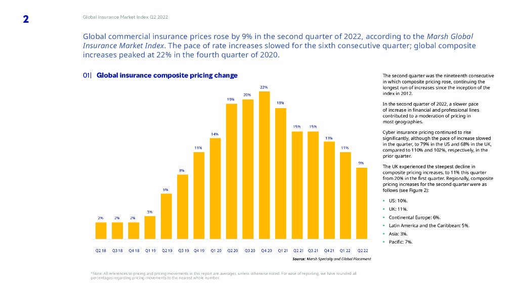 Marsh达信:2022年第二季度全球保险市场价格指数(英文版).pdf