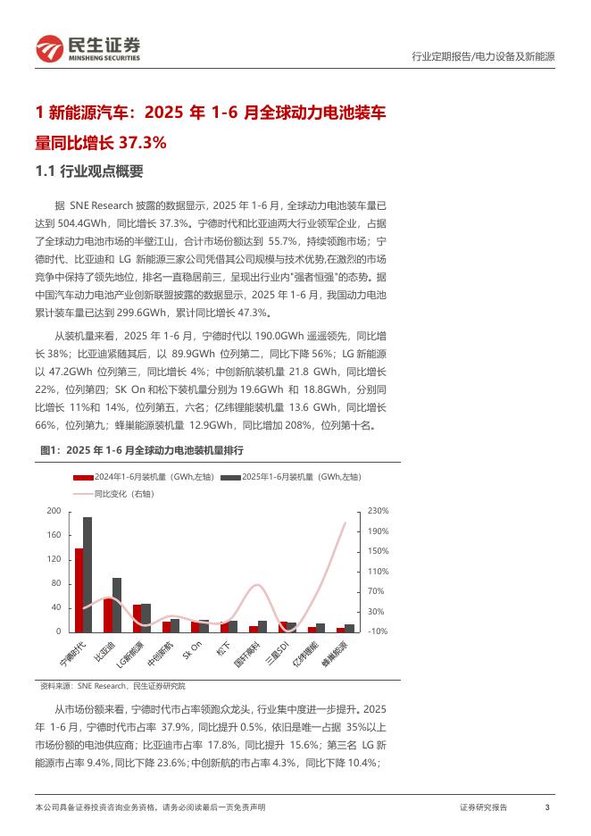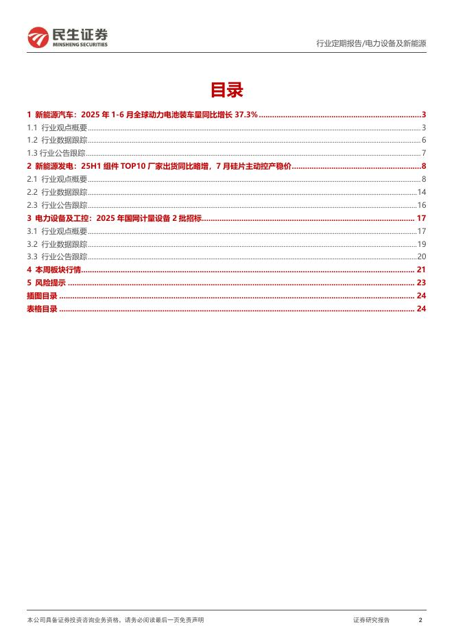 民生证券:电力设备及新能源周报:1-6月全球动力电池同比增长37.3%,7月硅片主动控产稳价.pdf