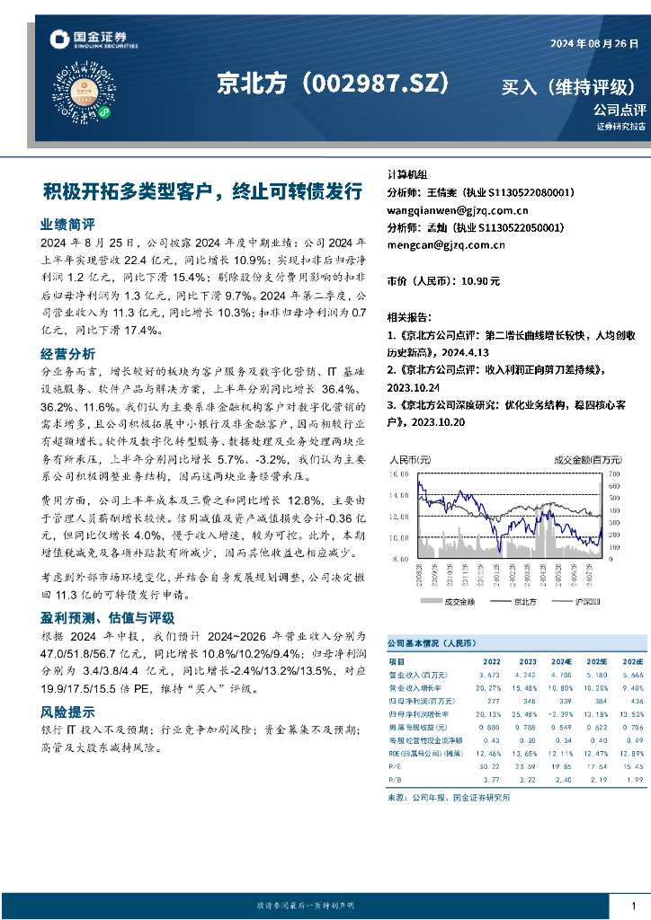 国金证券:京北方(002987)-积极开拓多类型客户,终止可转债发行.pdf
