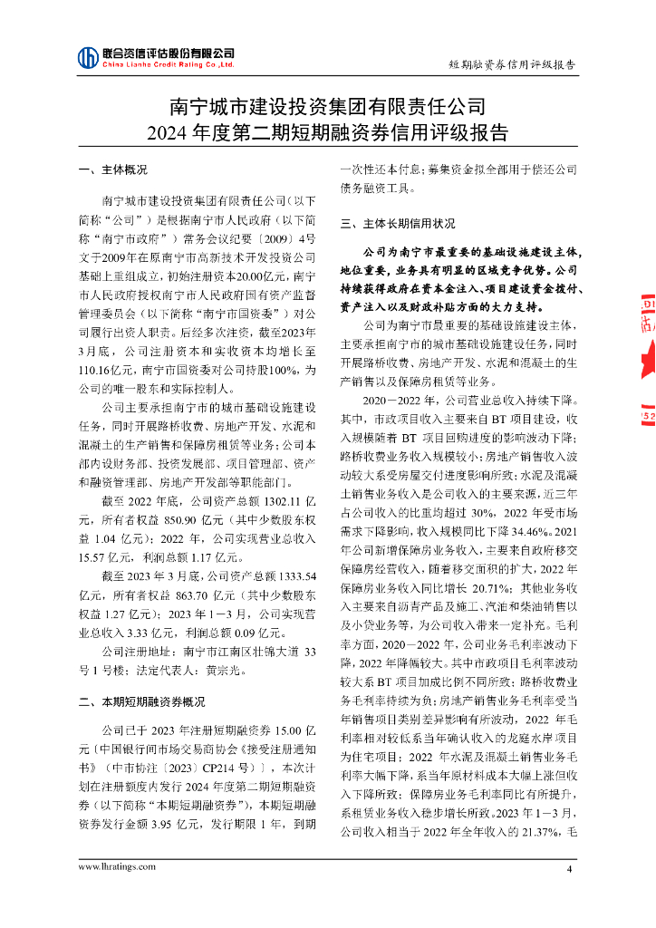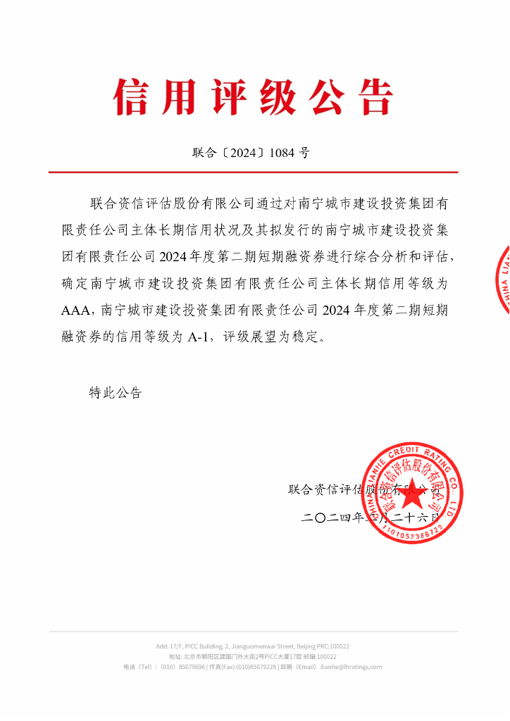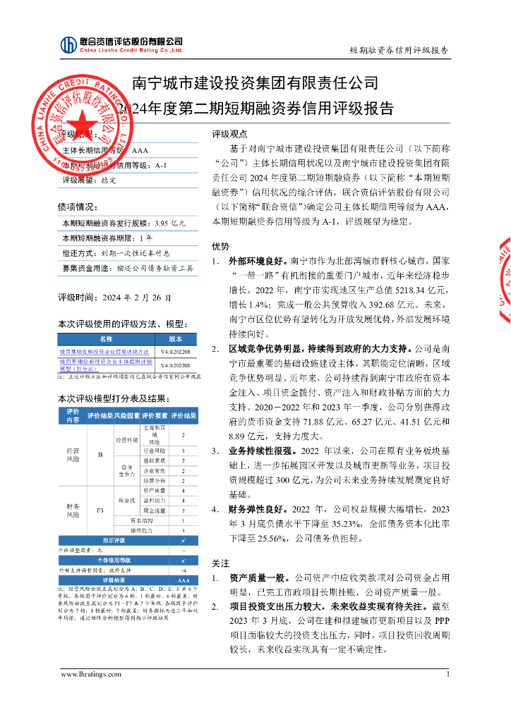 联合资信:南宁城市建设投资集团有限责任公司2024年度第二期短期融资券信用评级报告.pdf