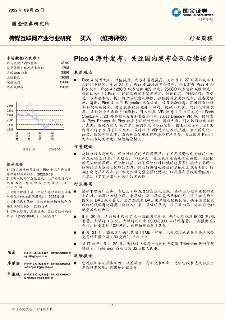 国金证券:传媒互联网产业行业研究:Pico4海外发布,关注国内发布会及后续销量.pdf
