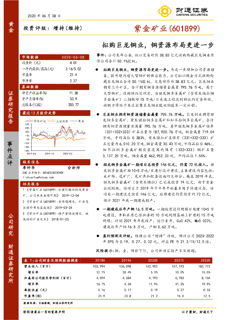 财通证券:紫金矿业(601899)-拟购巨龙铜业,铜资源布局更进一步.pdf