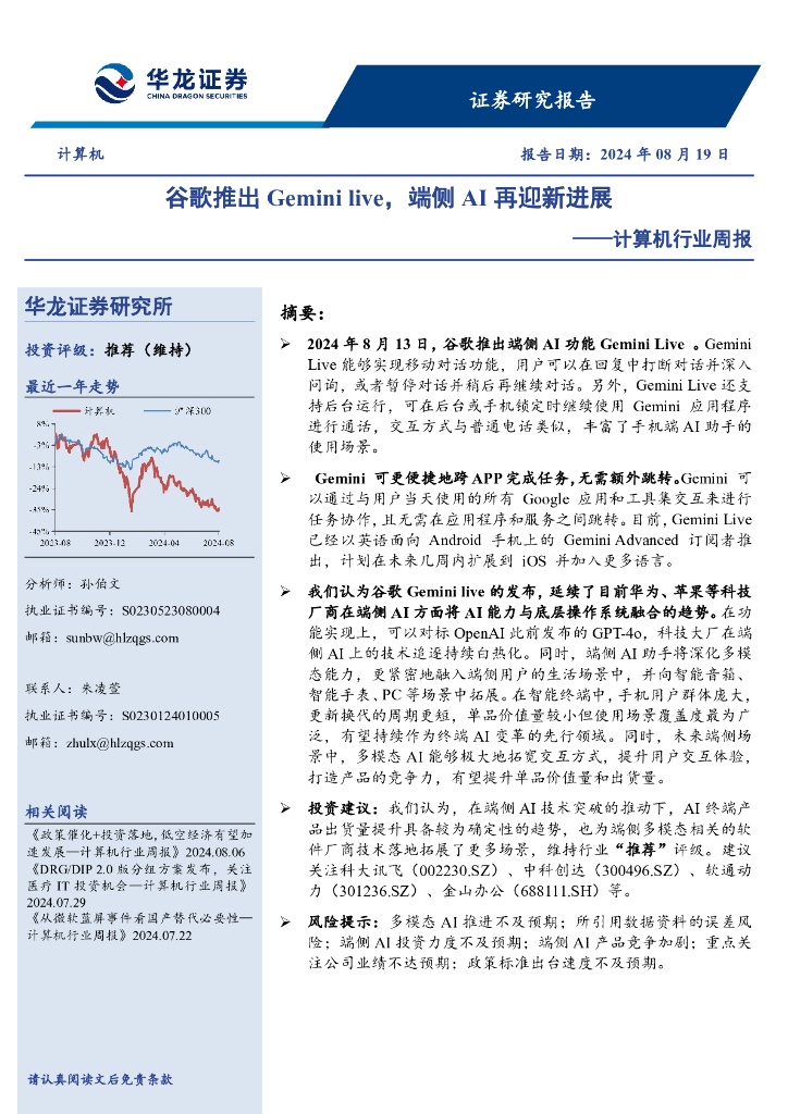 华龙证券:计算机行业周报:谷歌推出Geminilive,端侧AI再迎新进展.pdf