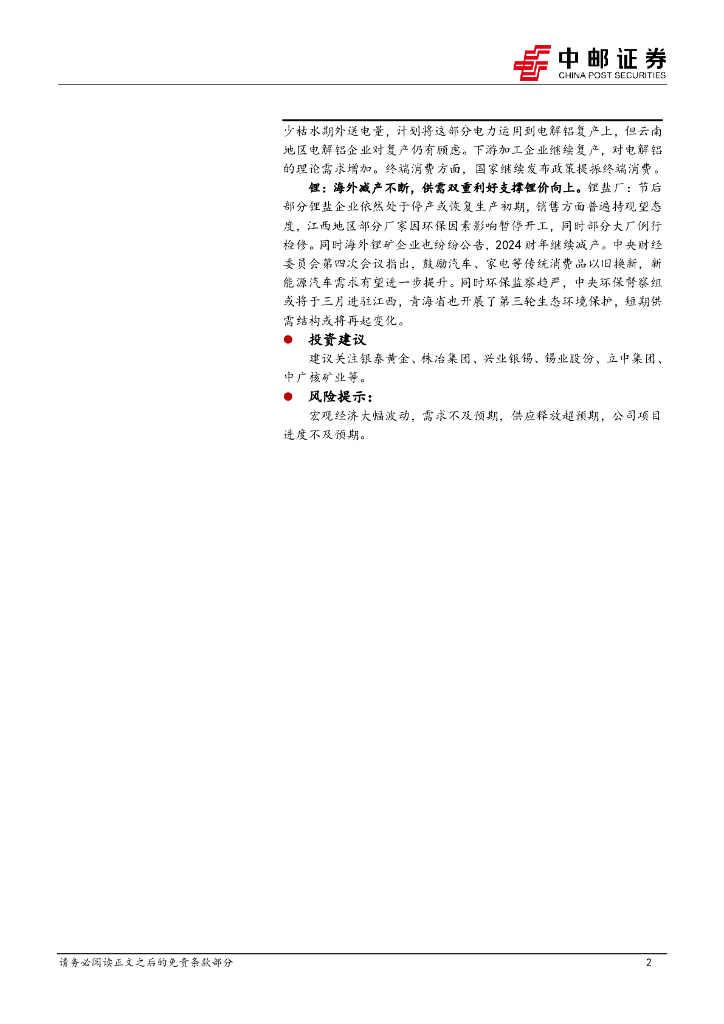 中邮证券:有色金属行业报告(2024.2.26-2024.3.2)“两会在即”,政策刺激下的需求回暖.pdf