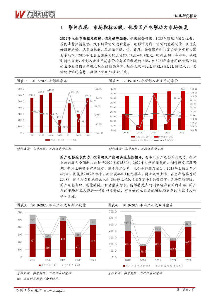 万联证券:传媒行业跟踪报告:2023年电影市场强劲复苏,国产电影崭露锋芒.pdf
