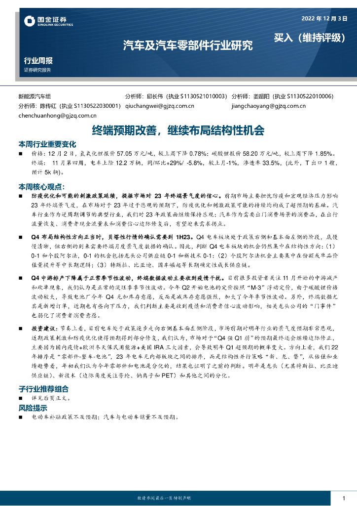 国金证券:汽车及汽车零部件行业研究:终端预期改善,继续布局结构性机会.pdf