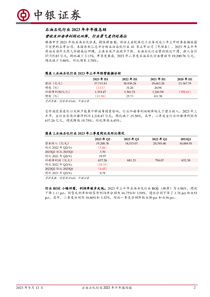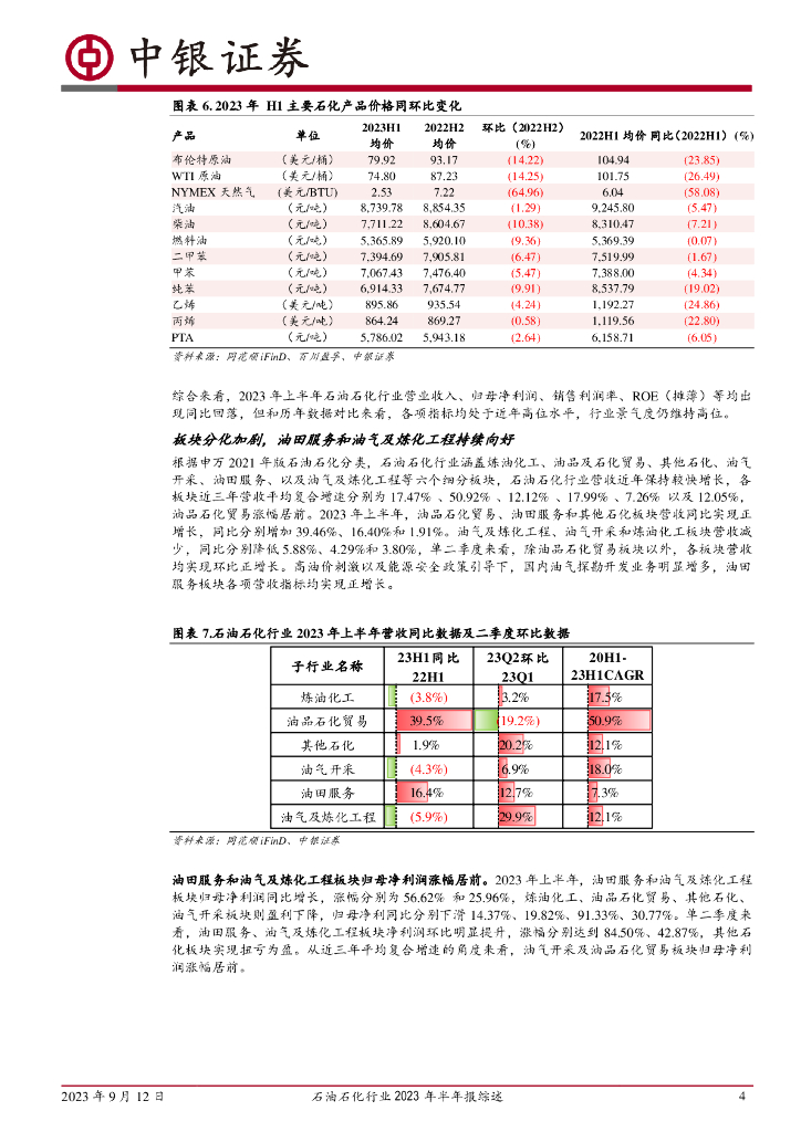 中银证券:石油石化行业2023年半年报综述:营收及利润同比双降,子板块景气度分化.pdf