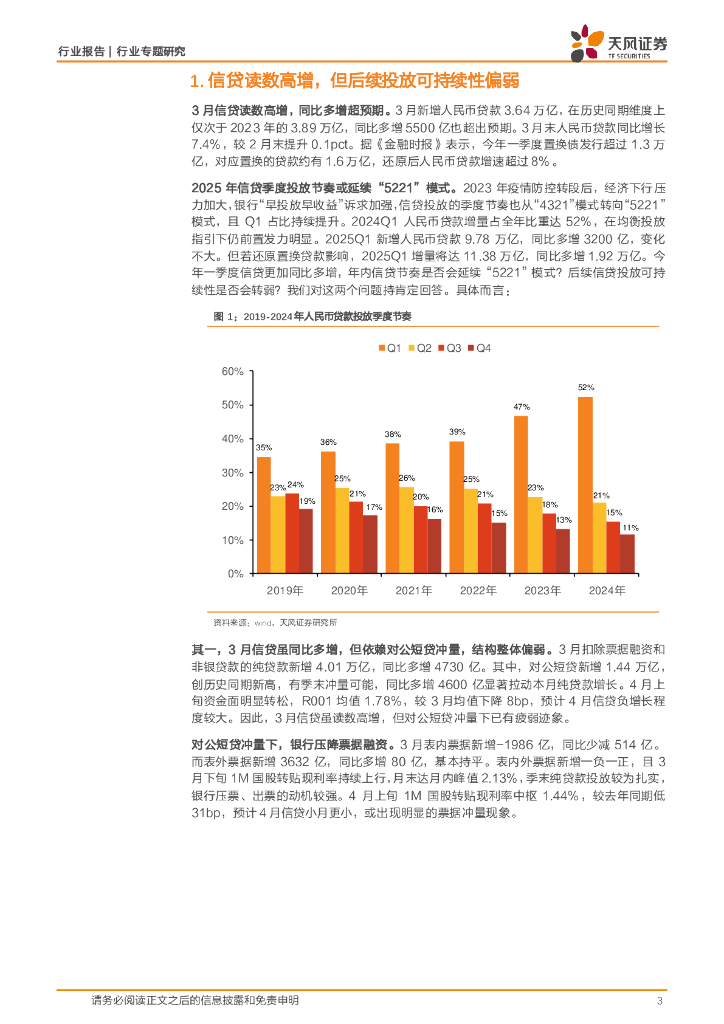 天风证券:银行业3月金融数据点评:信贷读数高增,但持续性偏弱.pdf