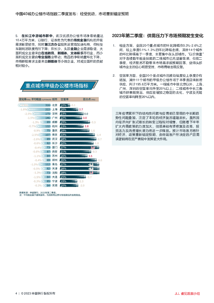 仲量联行睿见研究:中国40城办公楼市场指数二季度发布经受扰动市场重新锚定预期.pdf