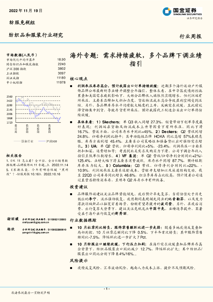 国金证券:纺织品和服装行业研究:海外专题:需求持续疲软,多个品牌下调业绩指引.pdf