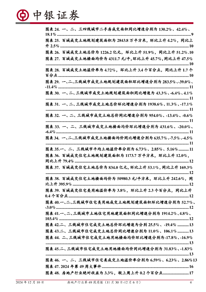 中银证券:房地产行业第49周周报:本周新房成交环比转负;政治局会议强调宏观宽松及再次明确稳楼市.pdf