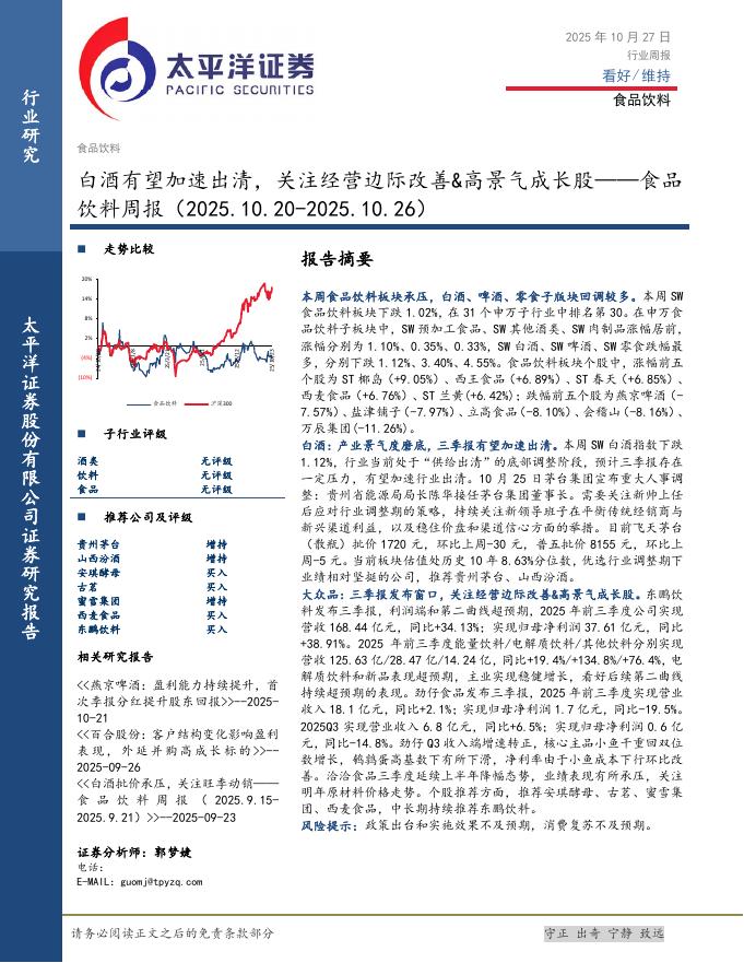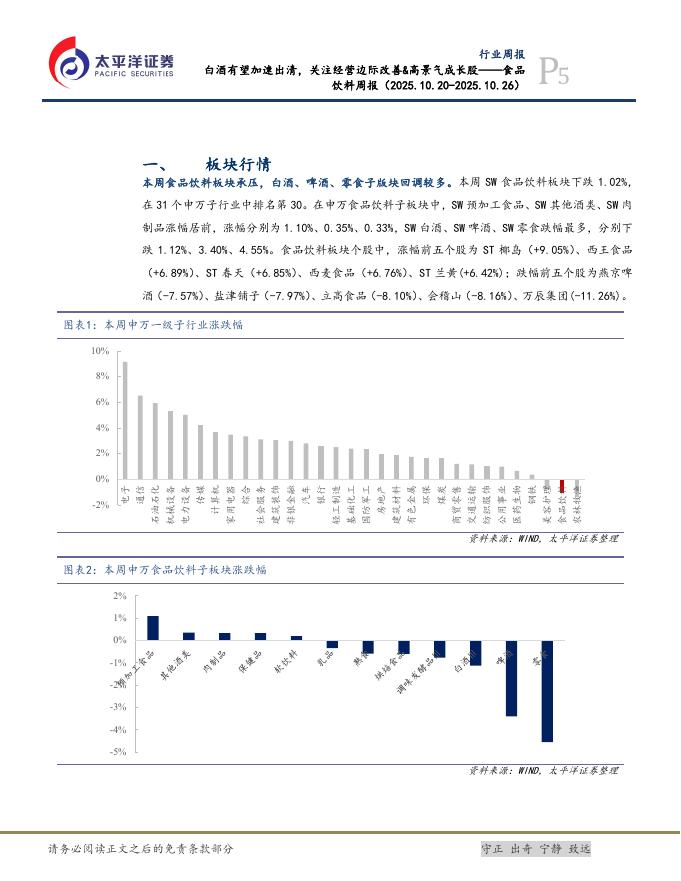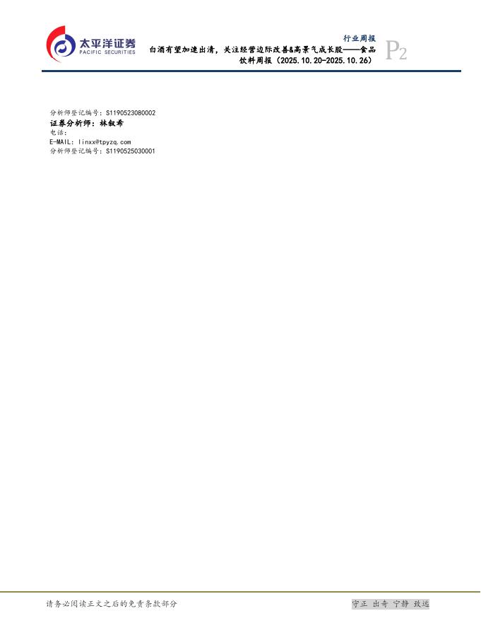 太平洋证券:食品饮料行业周报:白酒有望加速出清,关注经营边际改善&高景气成长股.pdf