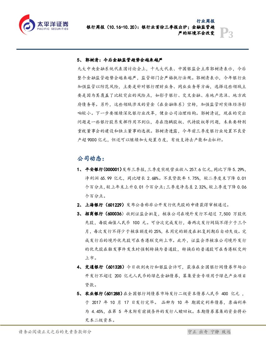 太平洋证券:银行周报:银行业首份三季报出炉;金融监管趋严的环境不会改变.pdf