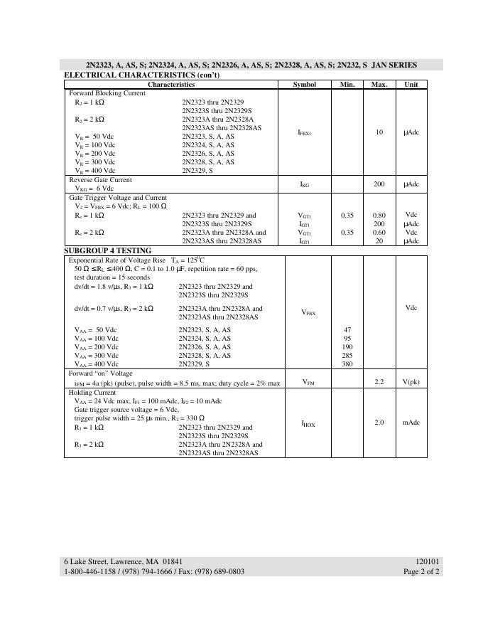 Microsemi Lawrence 2N2323/2N2323S/2N2323A/2N2323AS/2N2324/2N2324S/2N2324A/2N2324AS/2N2326/2N2326S/2N2326A/2N2326AS/2N2328/2N2328S/2N2328A/2N2328AS/2N2329/2N2329S 技术数据手册.pdf