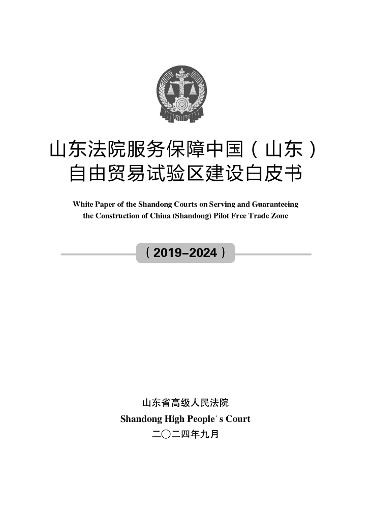 山东省高级人民法院:山东法院服务保障中国(山东)自由贸易试验区建设白皮书(2019-2024)(中英文版).pdf