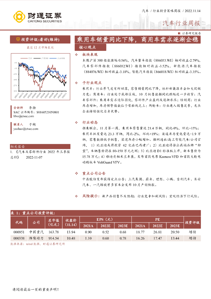 财通证券:汽车行业周报:乘用车销量同比下降,商用车需求逐渐企稳.pdf