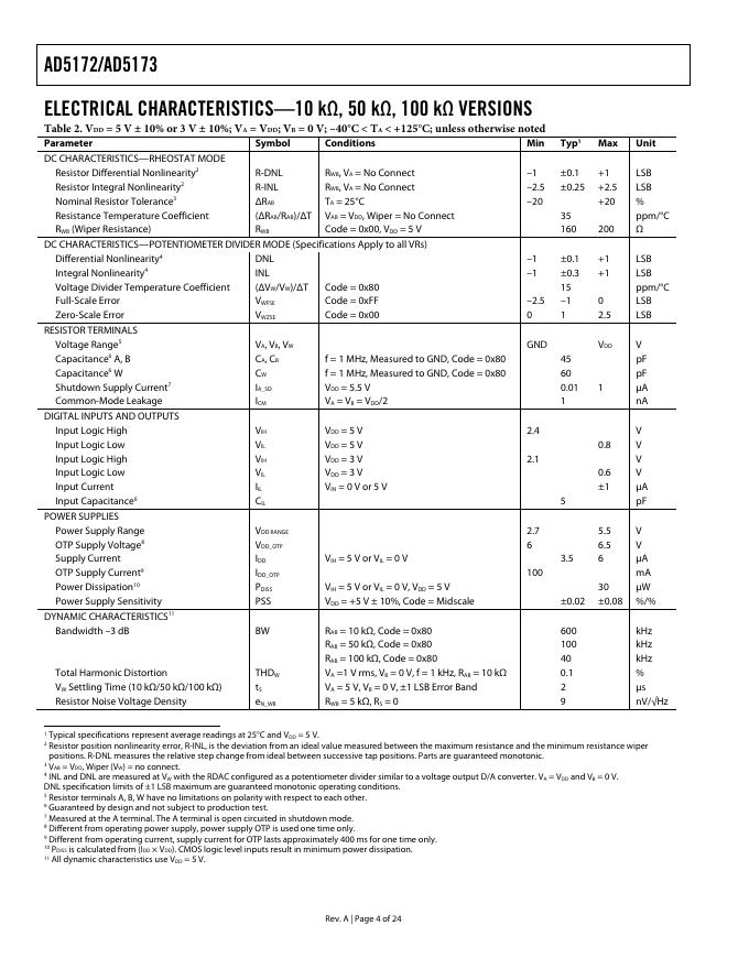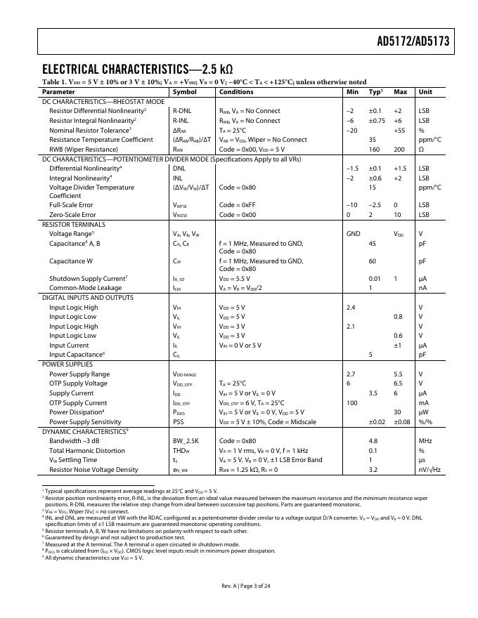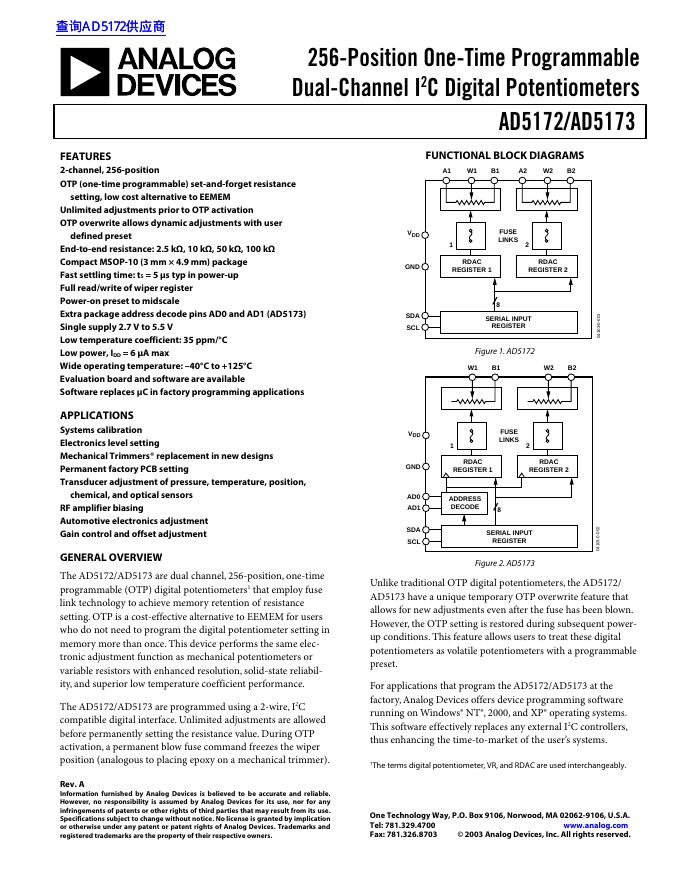 ANALOG DEVICES AD5172/AD5173 256-Position One-Time Programmable Dual-Channel I 2 C Digital Potentiometers 数据手册.pdf