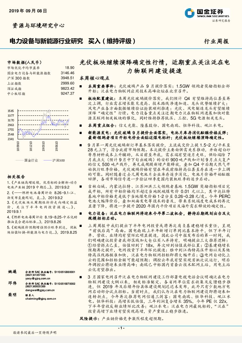 国金证券:电力设备与新能源行业研究:光伏板块继续演绎确定性行情,近期重点关注泛在电力物联网建设提速.pdf