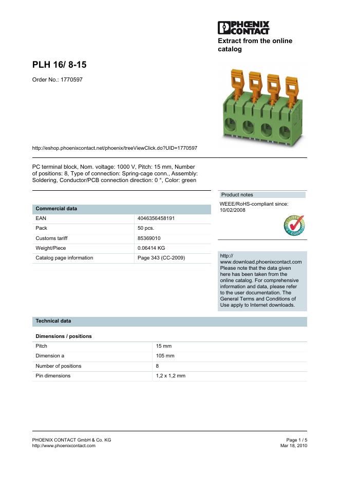 PHOENIX CONTACT PLH 16/ 8-15 Order No.: 1770597 数据手册.pdf