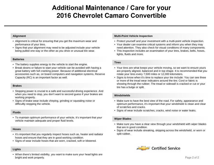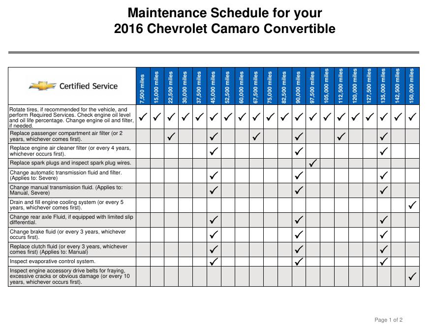 2016款雪佛兰科迈罗敞篷车维护时间表.pdf