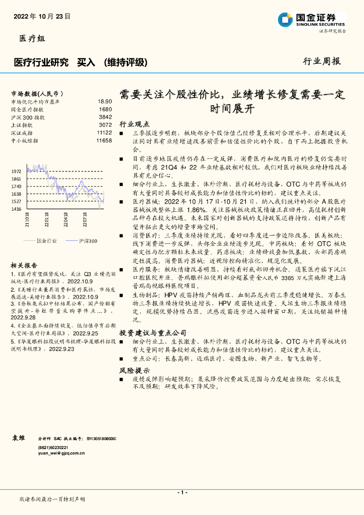 国金证券:医疗行业研究:需要关注个股性价比,业绩增长修复需要一定时间展开.pdf