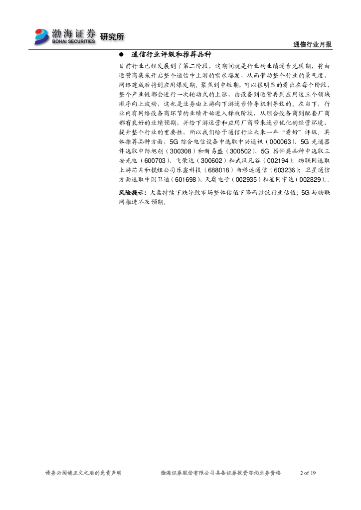 渤海证券:通信行业月报:运营商加大5G投资,行业景气提升得到保障.pdf