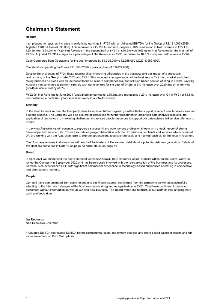 Jaywing plc(JWNG)2021财年年度报告(英文版).pdf