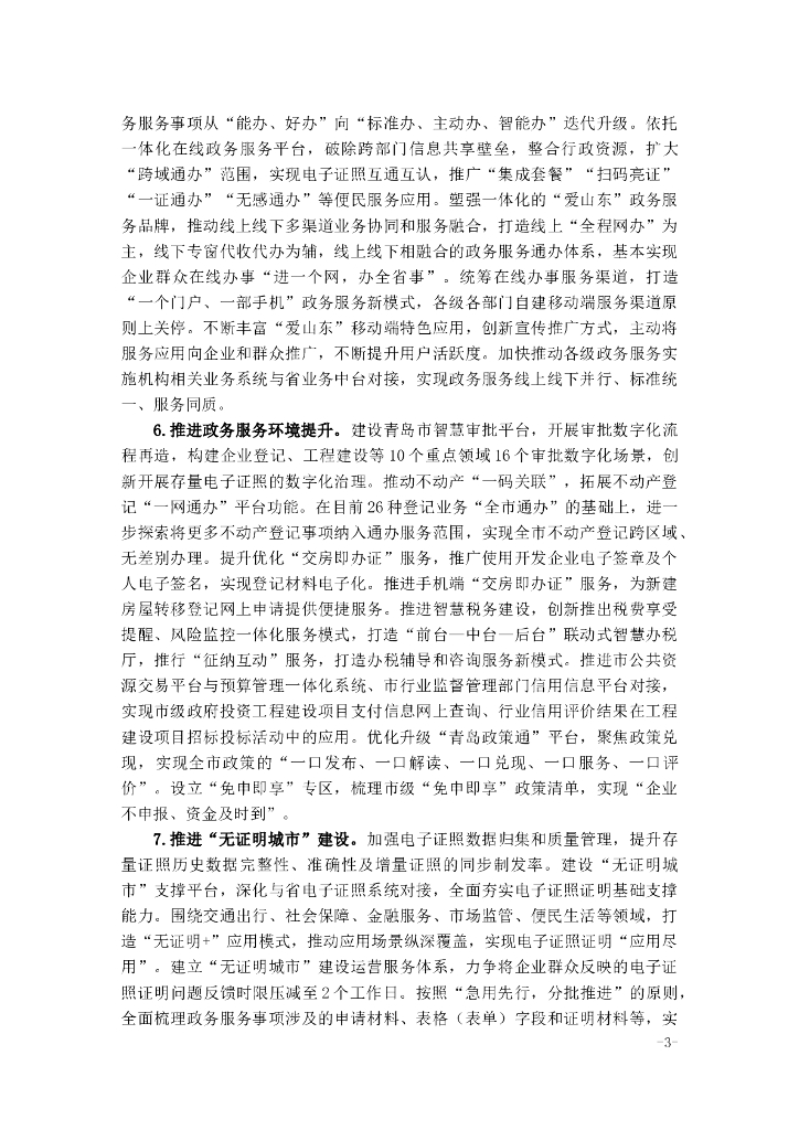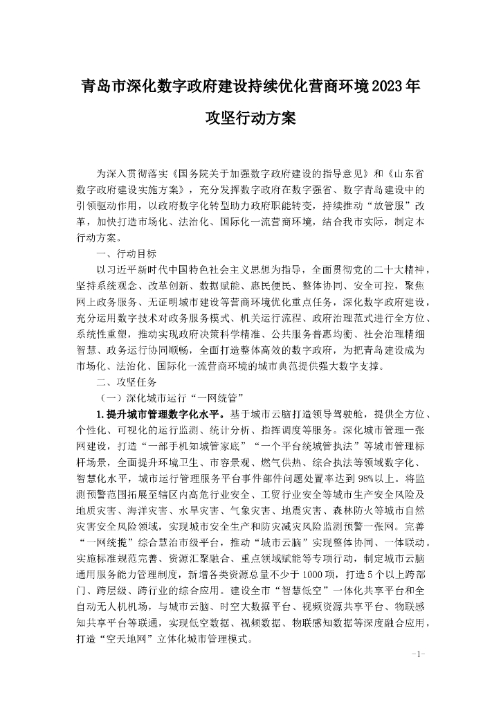 青岛市深化数字政府建设持续优化营商环境2023年攻坚行动方案.doc