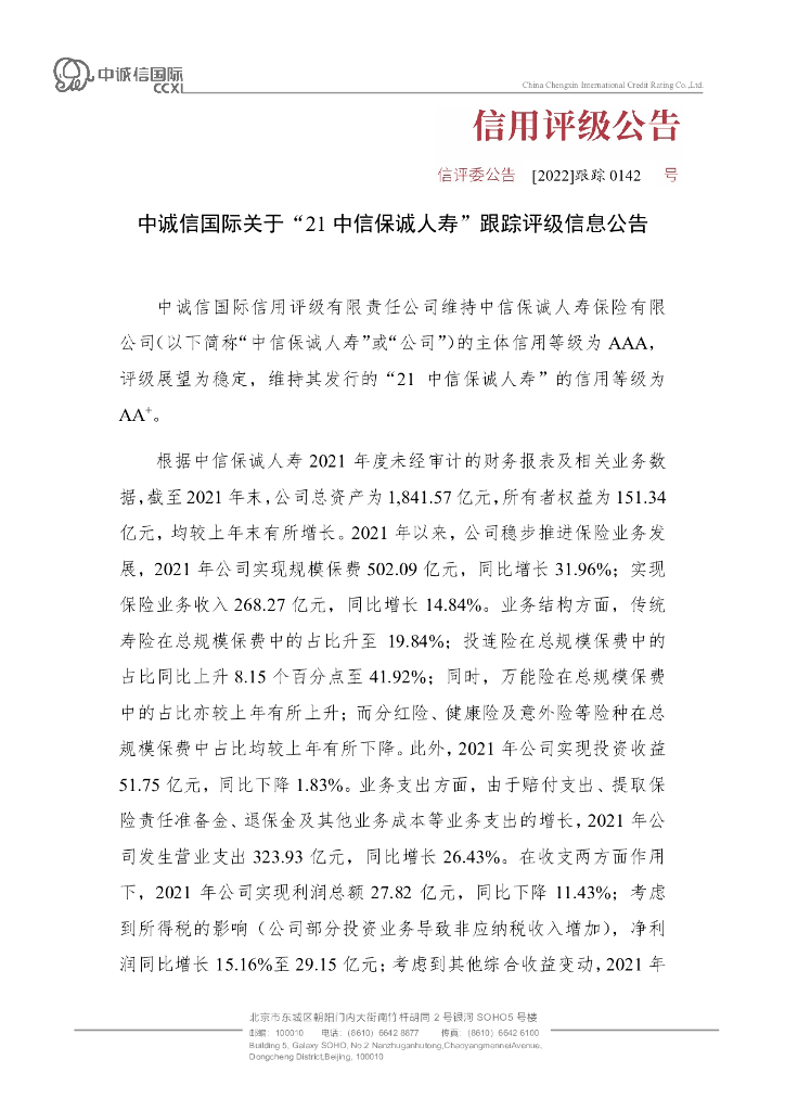 中诚信:中诚信国际关于“21中信保诚人寿”跟踪评级信息公告.pdf
