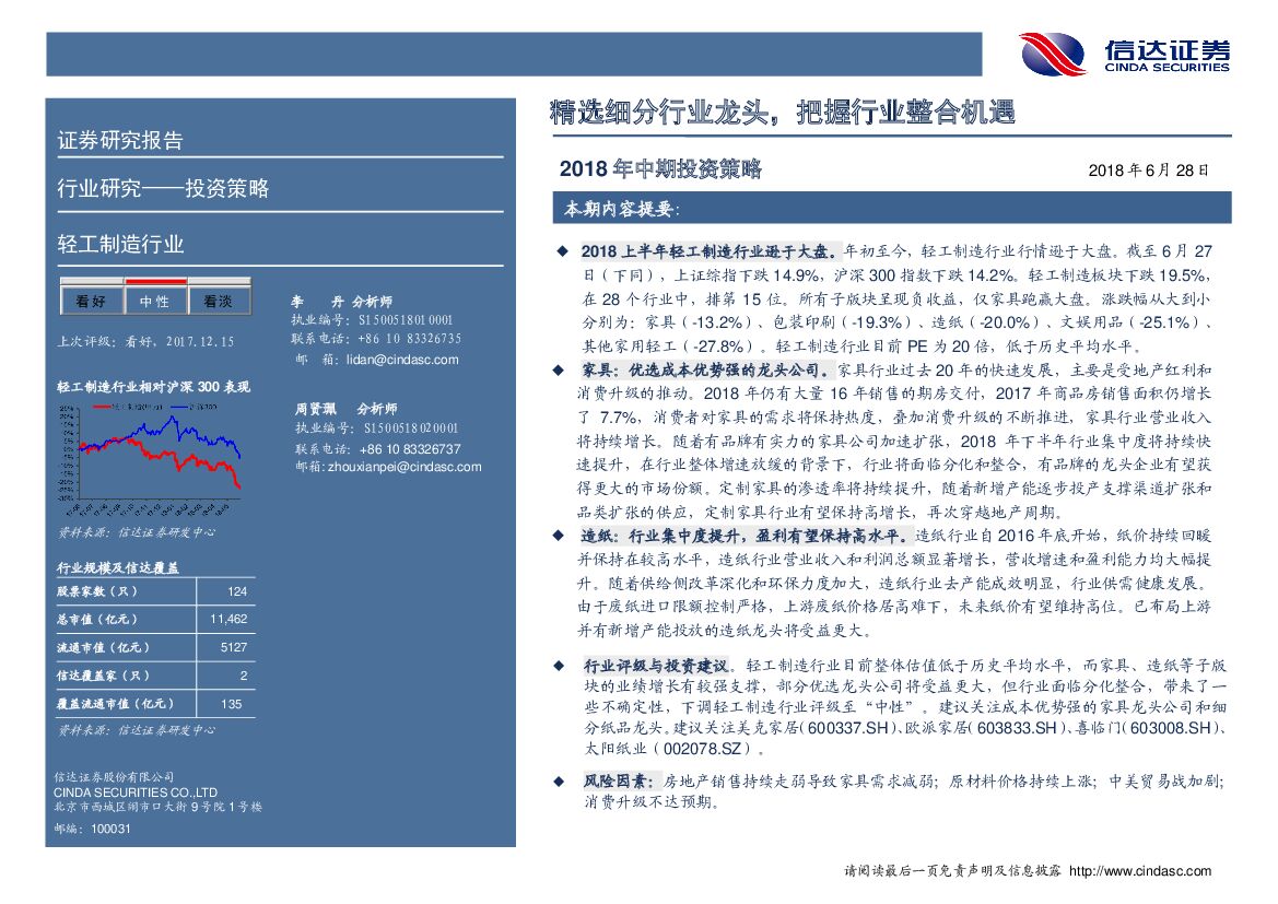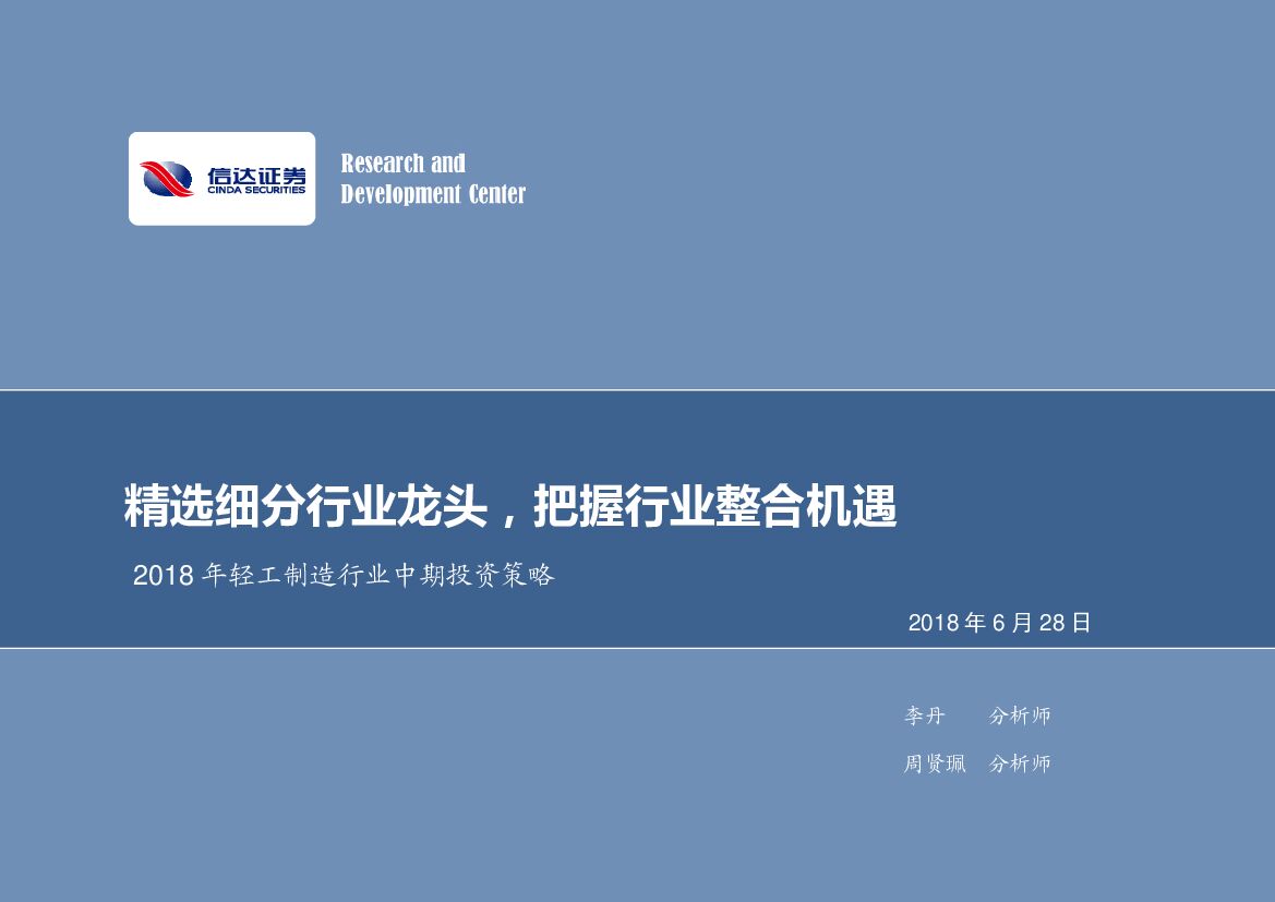 信达证券:2018年轻工制造行业中期投资策略:精选细分行业龙头,把握行业整合机遇.pdf