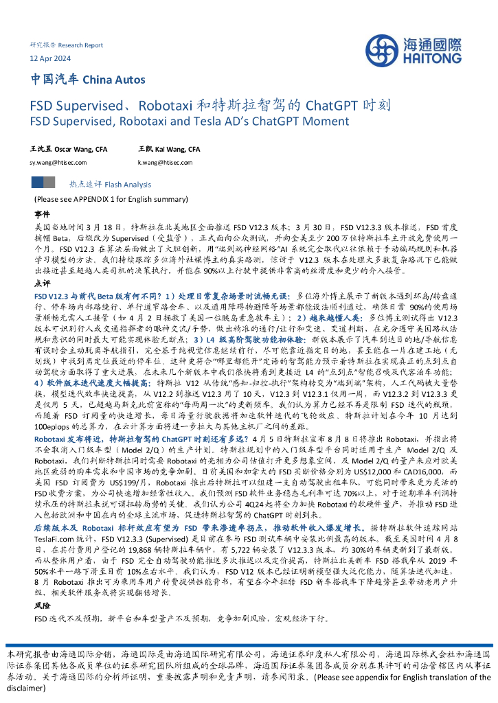 海通国际:中国汽车:FSDSupervised、Robotaxi和特斯拉智驾的ChatGPT时刻.pdf
