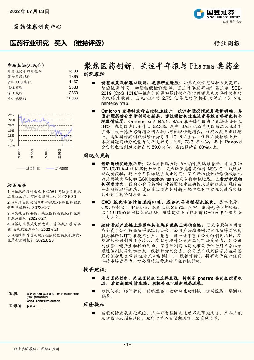 国金证券:医药行业研究:聚焦医药创新,关注半年报与Pharma类药企.pdf