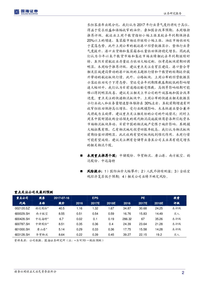 国海证券:交通运输行业周报:物流或催发板块行情,快递业高成长依旧.pdf