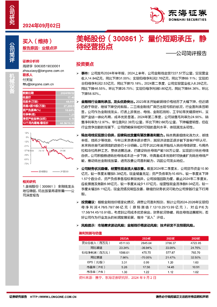东海证券:美畅股份(300861)-公司简评报告:量价短期承压,静待经营拐点.pdf