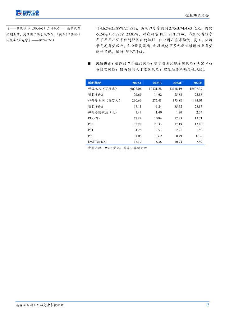 国海证券:科锐国际(300662)-2023年中报点评:基本面底部或至,业绩边际向上可期.pdf