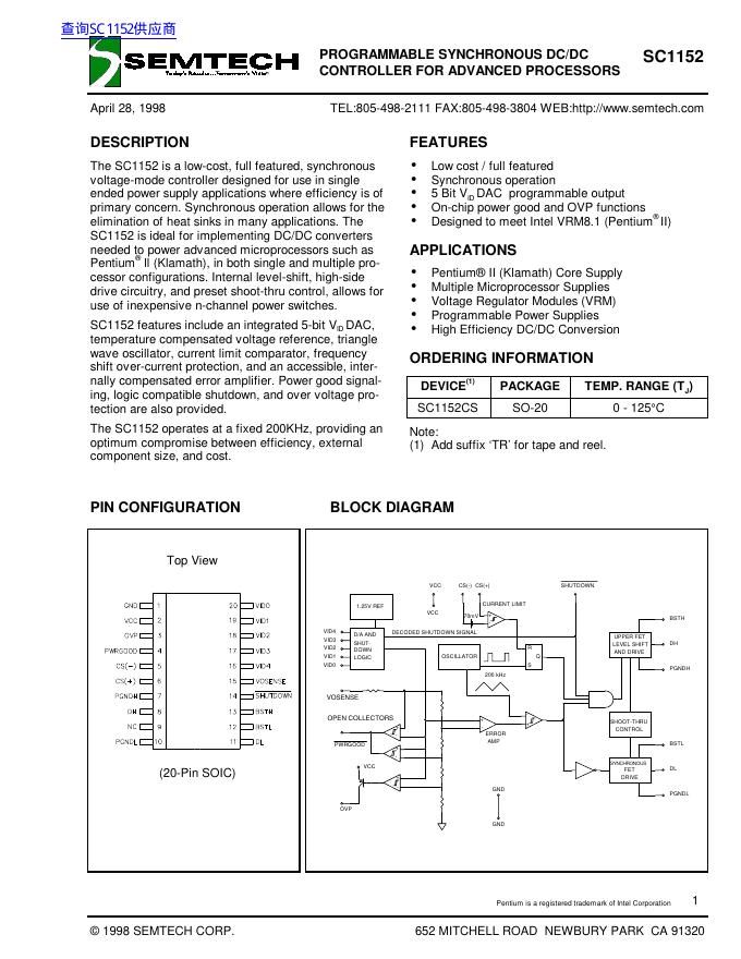 NATIONAL SEMICONDUCTOR - May 27, 2008 DS15BA101 1.5 Gbps Differential Buffer with Adjustable Output Voltage General 说明书