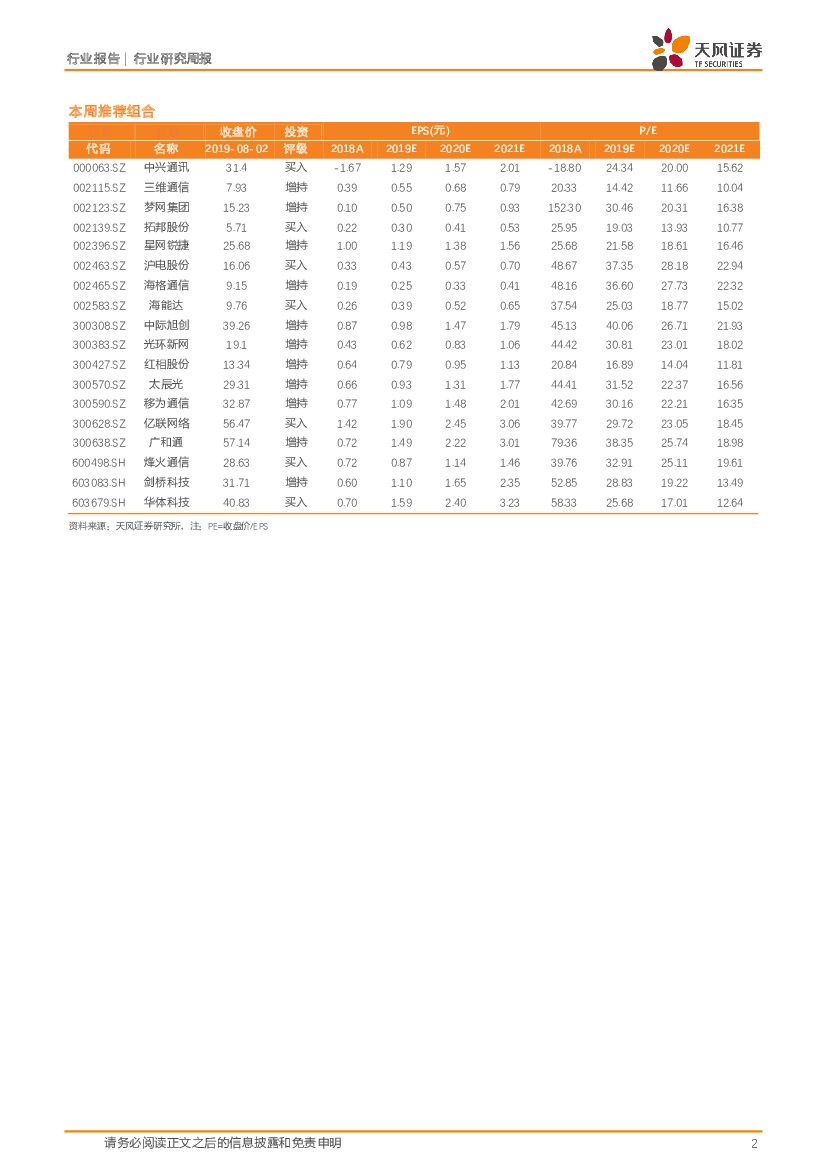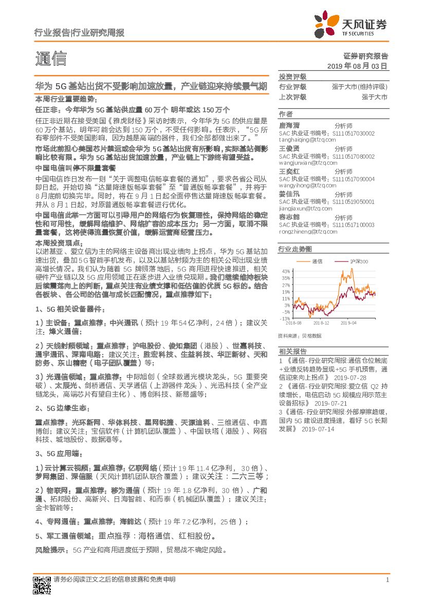 天风证券:通信行业研究周报:华为5G基站出货不受影响加速放量,产业链迎来持续景气期.pdf