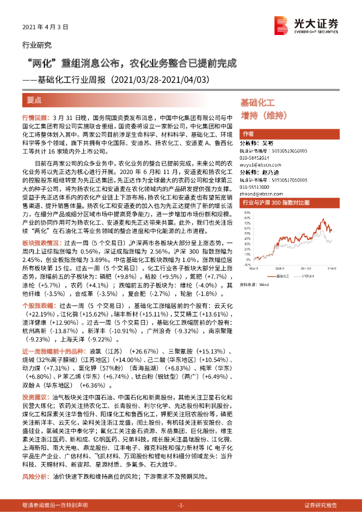 光大证券:基础化工行业周报:“两化”重组消息公布,农化业务整合已提前完成.pdf