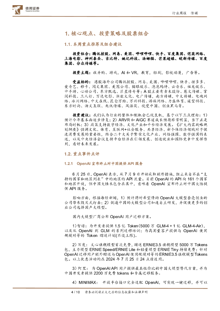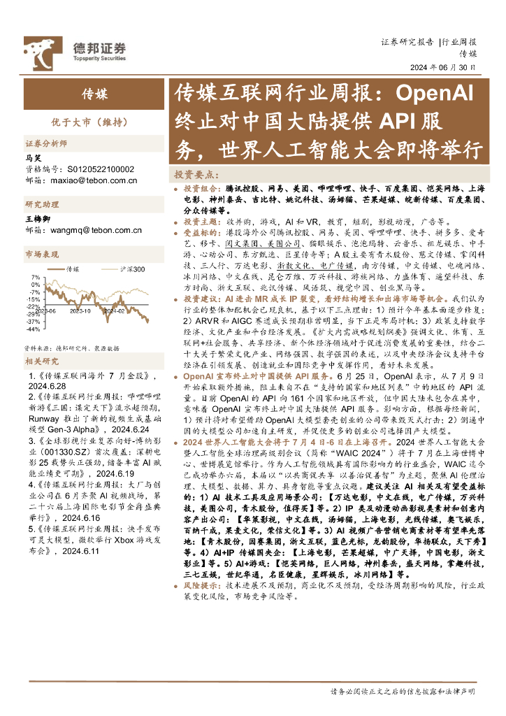 德邦证券:传媒互联网行业周报:OpenAI终止对中国大陆提供API服务,世界人工智能大会即将举行.pdf