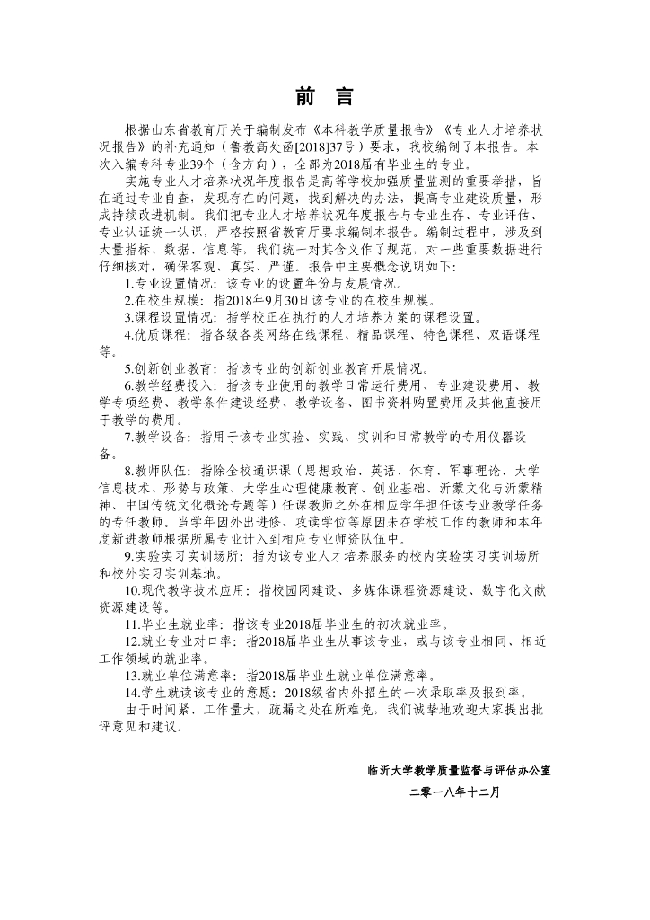 临沂大学2017-2018学年专业人才培养状况报告(专科).pdf