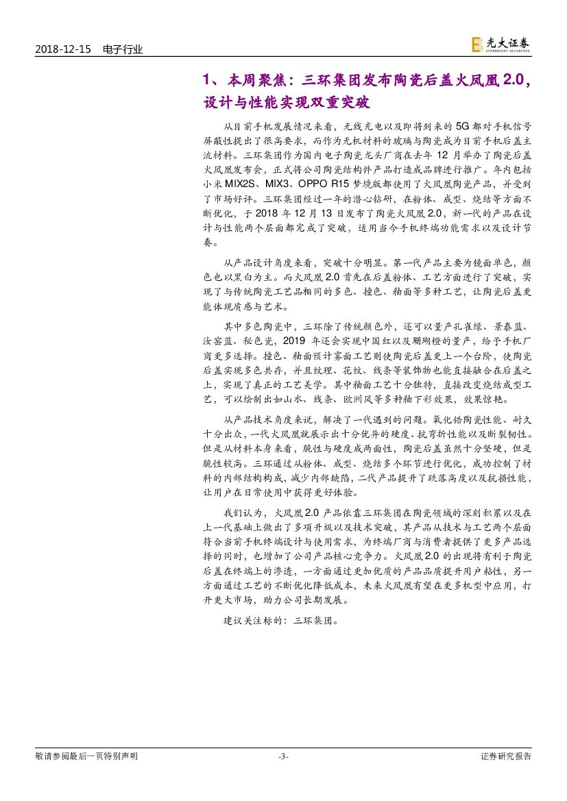 光大证券:电子行业周报:三环集团发布陶瓷后盖火凤凰2.0,设计与性能实现双重突破.pdf