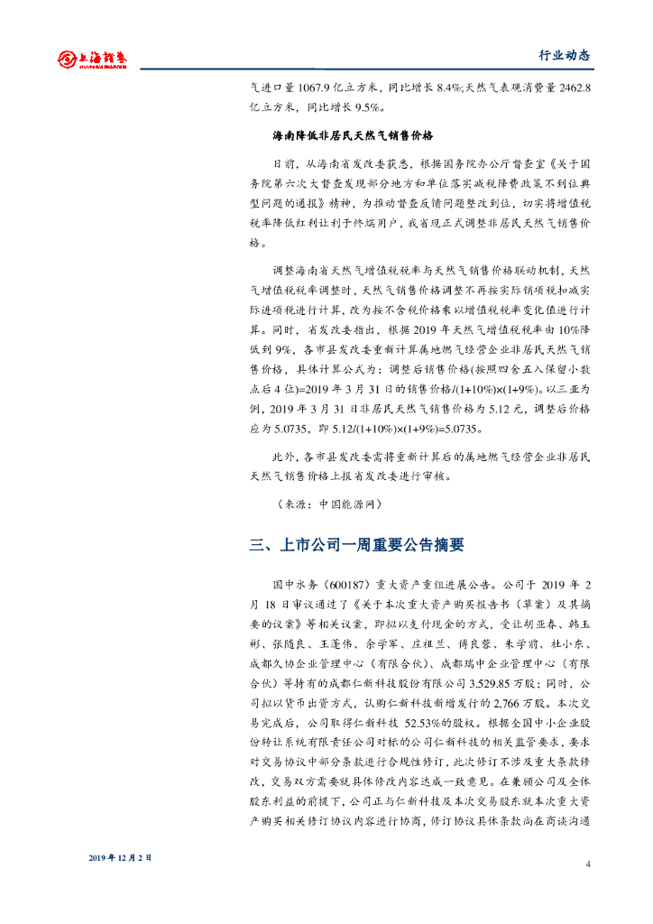 上海证券:燃气水务行业周报:海南降低非居民天然气销售价格.pdf