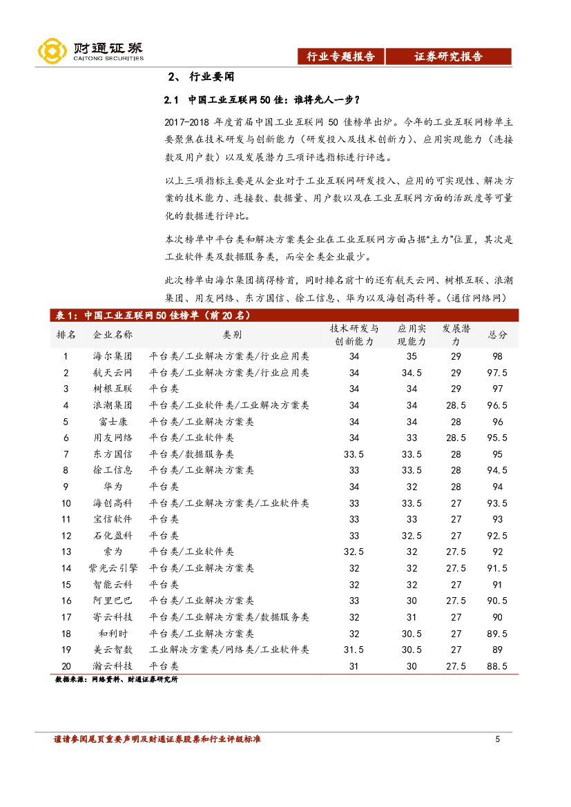 财通证券:计算机行业周报:工业互联网50佳榜单出炉,平台、解决方案类占主力.pdf