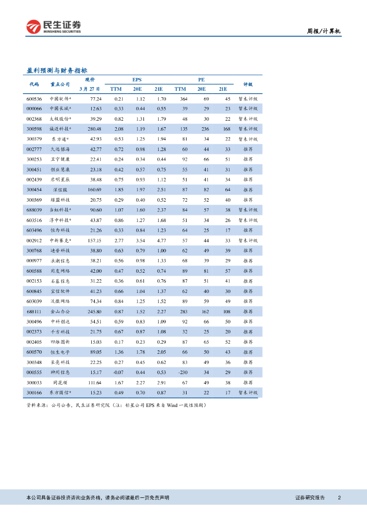 民生证券:计算机周报:关注华为鲲鹏产业链与信创领域重点公司.pdf