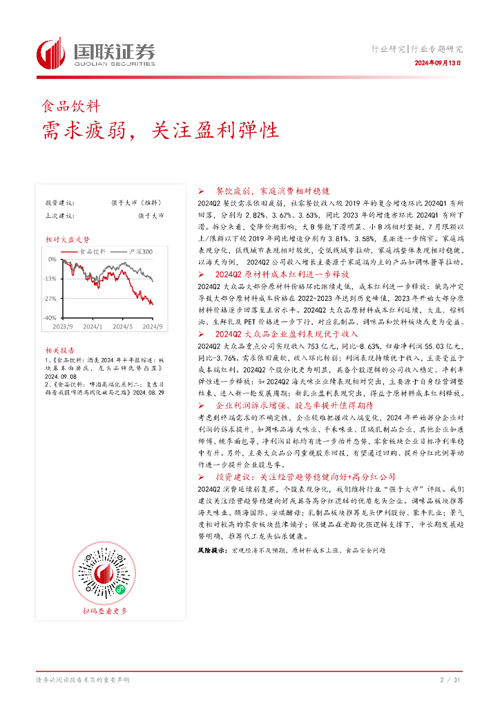 国联证券:食品饮料行业专题研究:需求疲弱,关注盈利弹性.pdf
