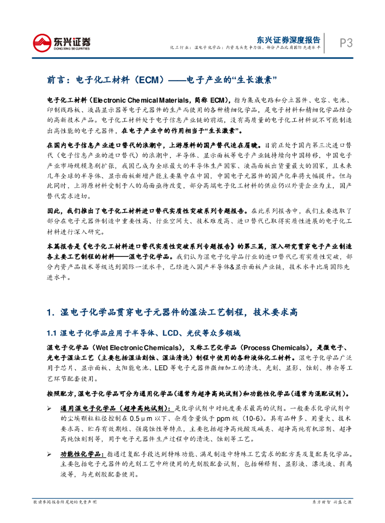 东兴证券:电子化工材料(ECM,电子产业的“生长激素”)进口替代实质性突破系列专题报告之三:湿电子化学品行业:内资龙头竞争力强,部分产品比肩国际先进水平.pdf