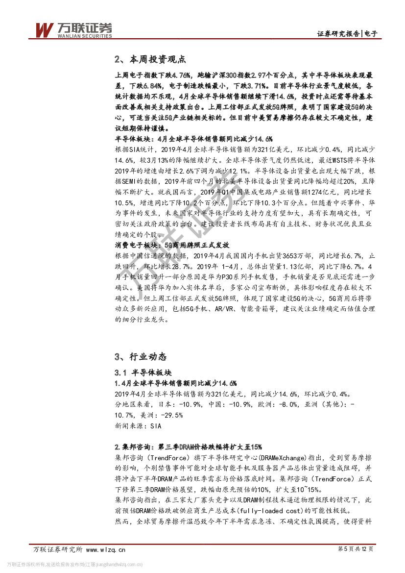 万联证券:电子行业周观点:半导体销售额下滑,工信部发放5G牌照.pdf