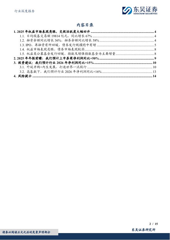 东吴证券:证券行业2025年年报前瞻及展望:权益市场表现亮眼,我们预计2025年净利润同比+50%,2026年高基数下同比+16%.pdf