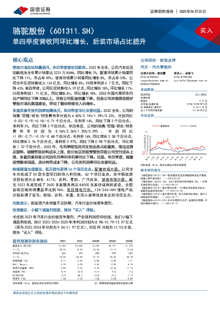 国信证券:骆驼股份(601311)-单四季度营收同环比增长,后装市场占比提升.pdf