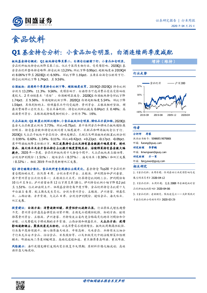 国盛证券:食品饮料行业周报:Q1基金持仓分析:小食品加仓明显,白酒连续两季度减配.pdf